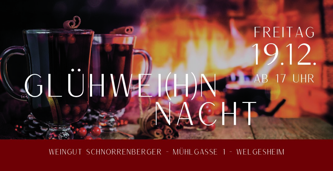 Am 19. Dezember laden wir euch herzlich zu unserer Glühwei(h)n-Nacht ein! Freut euch auf eine weihnachtliche Atmosphäre, duftend leckeren Glühwein und herzhafte Speisen aus dem Holzofen und vom Grill. Gemeinsam genießen wir den Abend bei Lichterglanz, Musik und ganz viel Vorfreude auf Weihnachten! Kommt vorbei, bringt Freunde mit und lasst gemeinsam anstoßen auf eine schöne Weihnachtszeit.